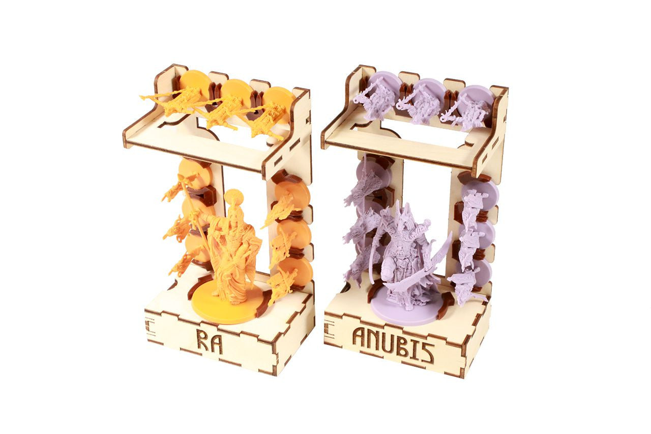 Get your Gods organized in their fight for eternal reign with this Game Organizer Compatible with Ankh: Gods of Egypt base game. Includes 13 trays: 5 God Trays keep your miniatures secure and safe, with a compartment for your bases and tokens, 1 Monuments Tray, 1 Bits Tray, 1 Camel Tray, 1 Follower Tray, 1 Card Tray that holds your Pharaoh and Sphinx, 2 Miniature Trays for your Guardians and 1 Board and Reference Cards Tray.