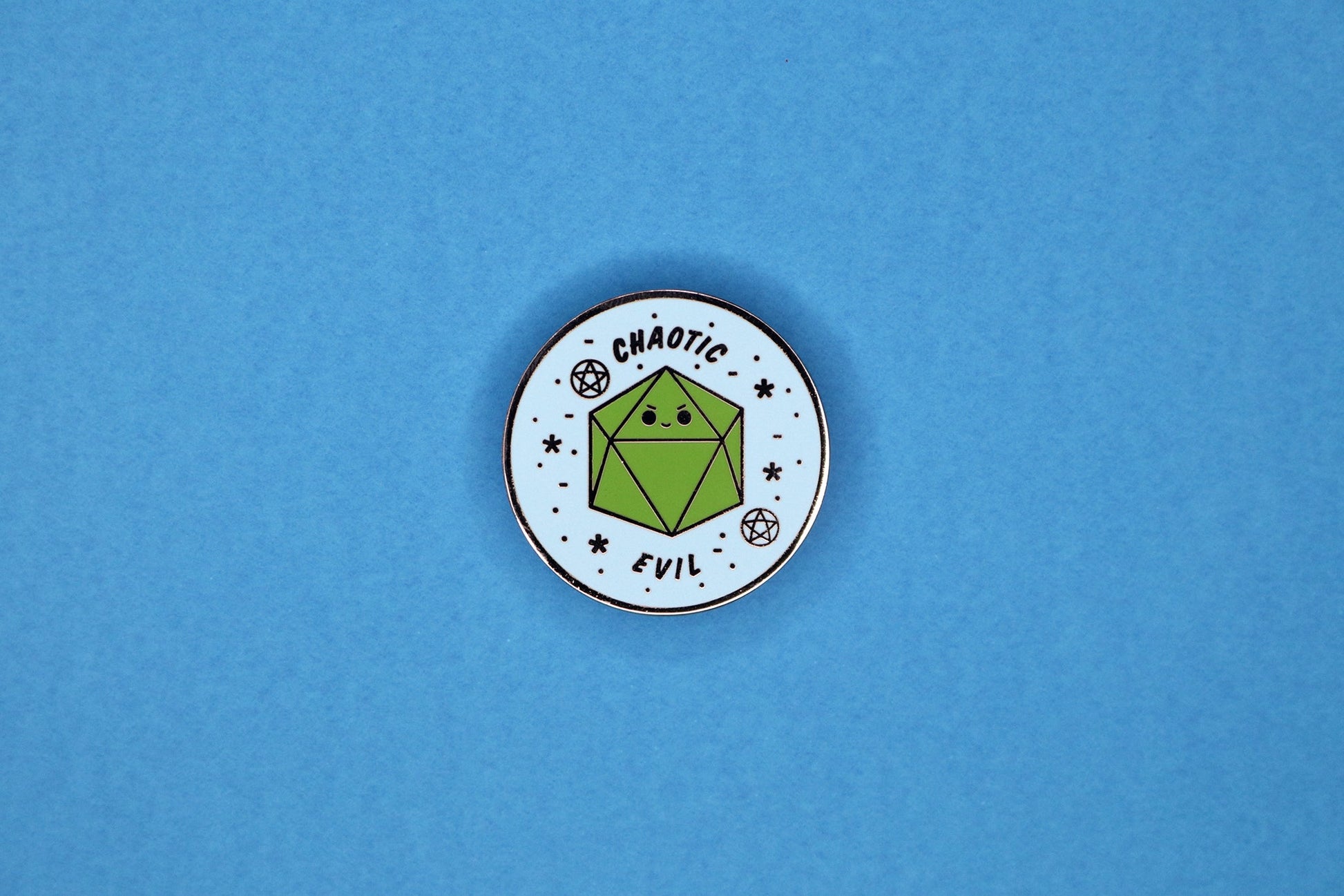 Playing chaotic evil characters in tabletop games like D&D or Pathfinder takes a special type of player. We aren't saying that you're crazy if you're able to play as this alignment, but we kinda are. Our chaotic evil alignment hard enamel pin will look great on your dice bag or backpack.