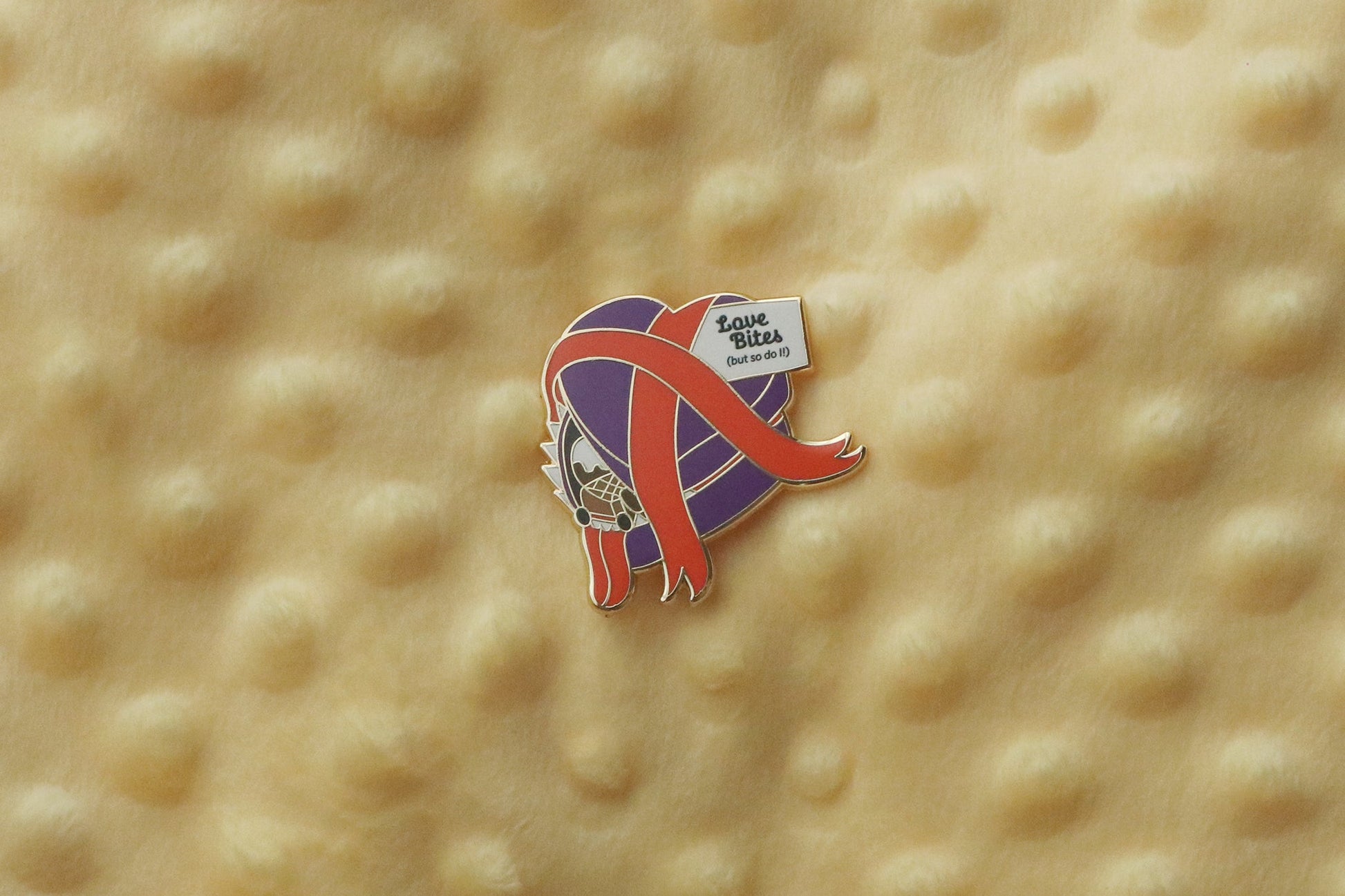 Beware of sweet deception, our Chocolate Box Mimic Enamel Pin might bite! This notorious shapeshifter disguised as a heart-shaped chocolate box features detailed teeth and tongue in vibrant, polished enamel. Premium craftsmanship includes 2 secure posts with rubber backers, ensuring this trickster stays firmly attached to your reusable grocery tote bag, dungeon master cloak, or Valentine's Day outfit. Each pin includes the distinctive Dbl Feature logo, certifying its authenticity in our monsters-meet-sweets collection. Perfect for chocolate lovers with a sense of humor, trap-setting dungeon masters, and players who've learned the hard way to check for teeth before grabbing loot!