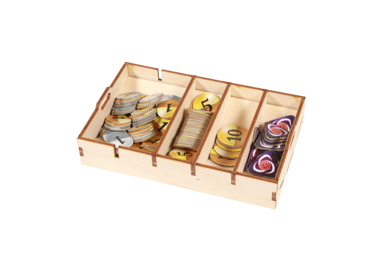 Whether you are venturing into a dragon’s lair to steal fine artifacts or sneaking through Lord Eradikus’ ship to grab his loot, you’ll need a little help from The Broken Token to make your mission successful. Our Game Organizer Compatible with Clank! and Clank! In Space! Features 11 trays: 1 Map tray with an adaptable configuration for use with Clank! In Space!, 4 Player Trays, 2 Card Trays, a Gold/Credits Tray, a Dragon/Boss Tray and 2 Bits Trays.