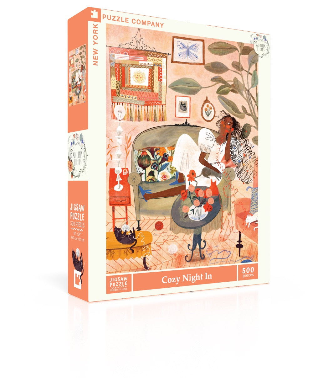 Crafted with random die-cut pieces—meaning no two are alike—this 500 piece puzzle offers a satisfying and unique challenge for puzzle enthusiasts of all levels. Made with care in the USA, Cozy Night In is not just a puzzle; it's a delightful escape into a world of color, comfort, and creativity. Perfect for solo relaxation or sharing with friends and family, this puzzle makes an excellent gift for cat lovers, art enthusiasts, and anyone who cherishes a cozy night in. Bring this enchanting scene to life, one piece at a time!
