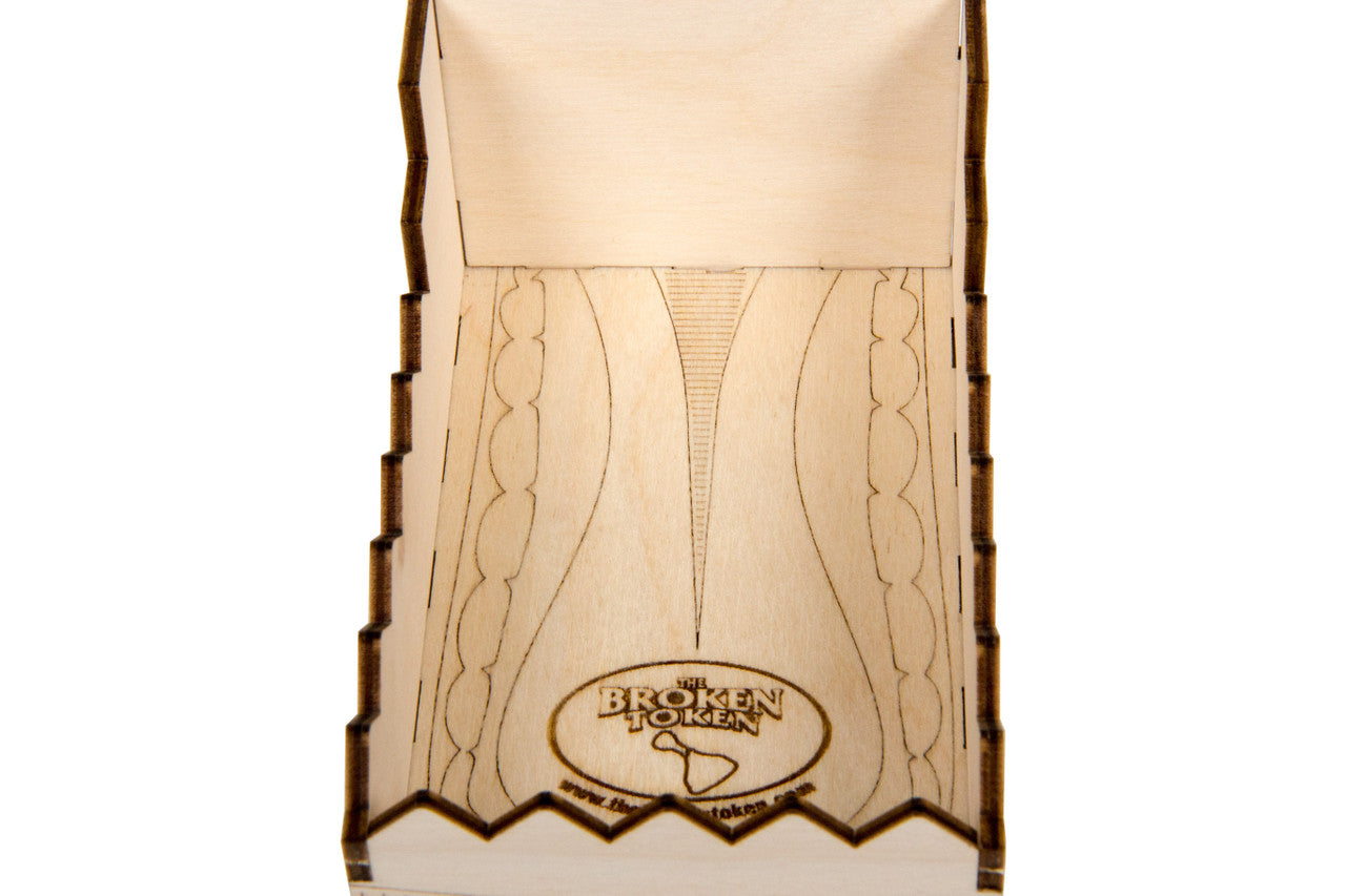 Invite Frank, Cy and Nessy to your Halloween table with our monster-themed mini dice tower, complete with custom engravings. Tower folds for easy travel and looks great in the middle of any gaming table. This tower ships as a kit that you easily snap together in minute, no glue required!