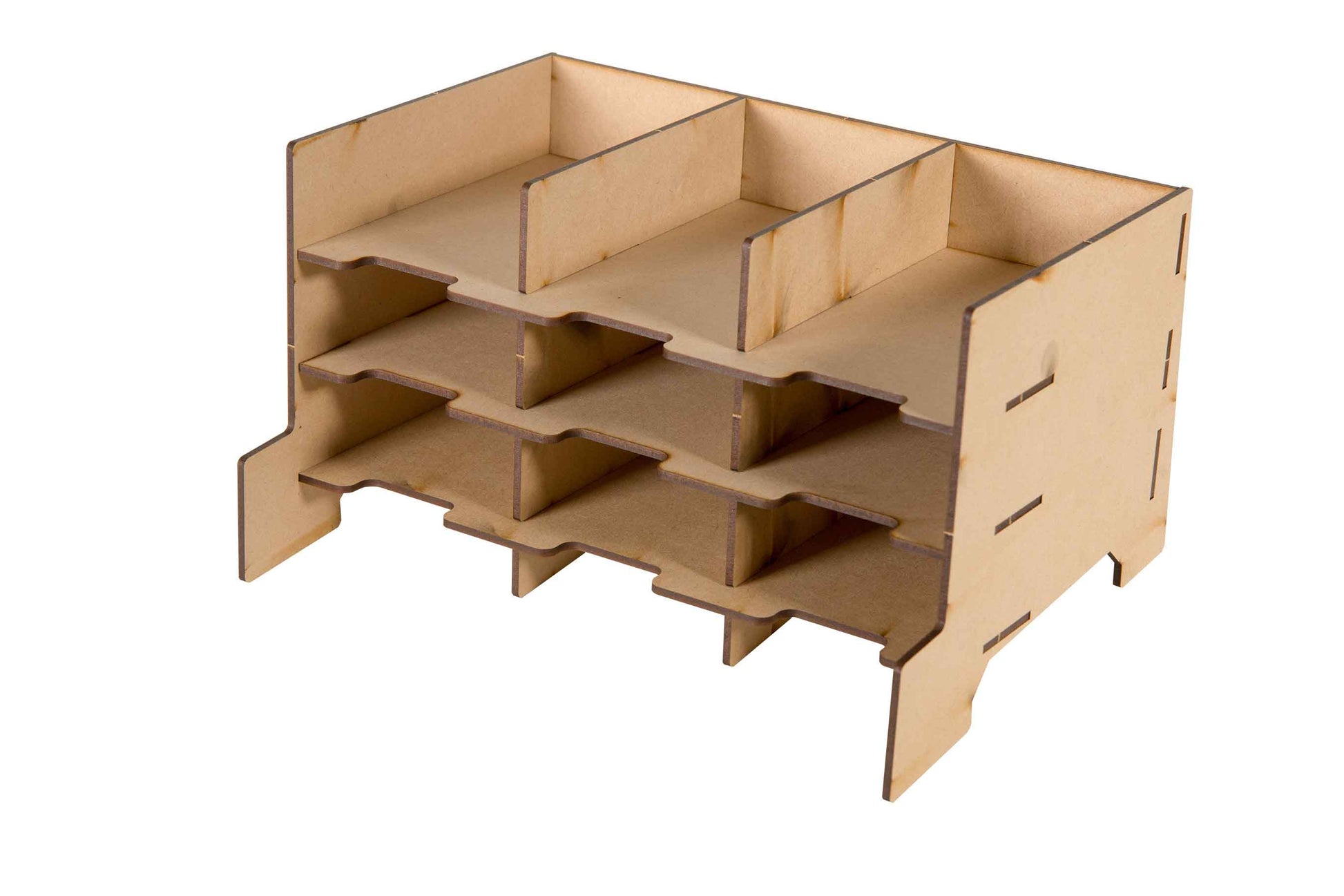 These MDF racks hold your art supplies in a tiered cubby layout for easy organization and access when you’re letting your creativity flow. Multiple racks can be combined into a larger system using the included clips!
