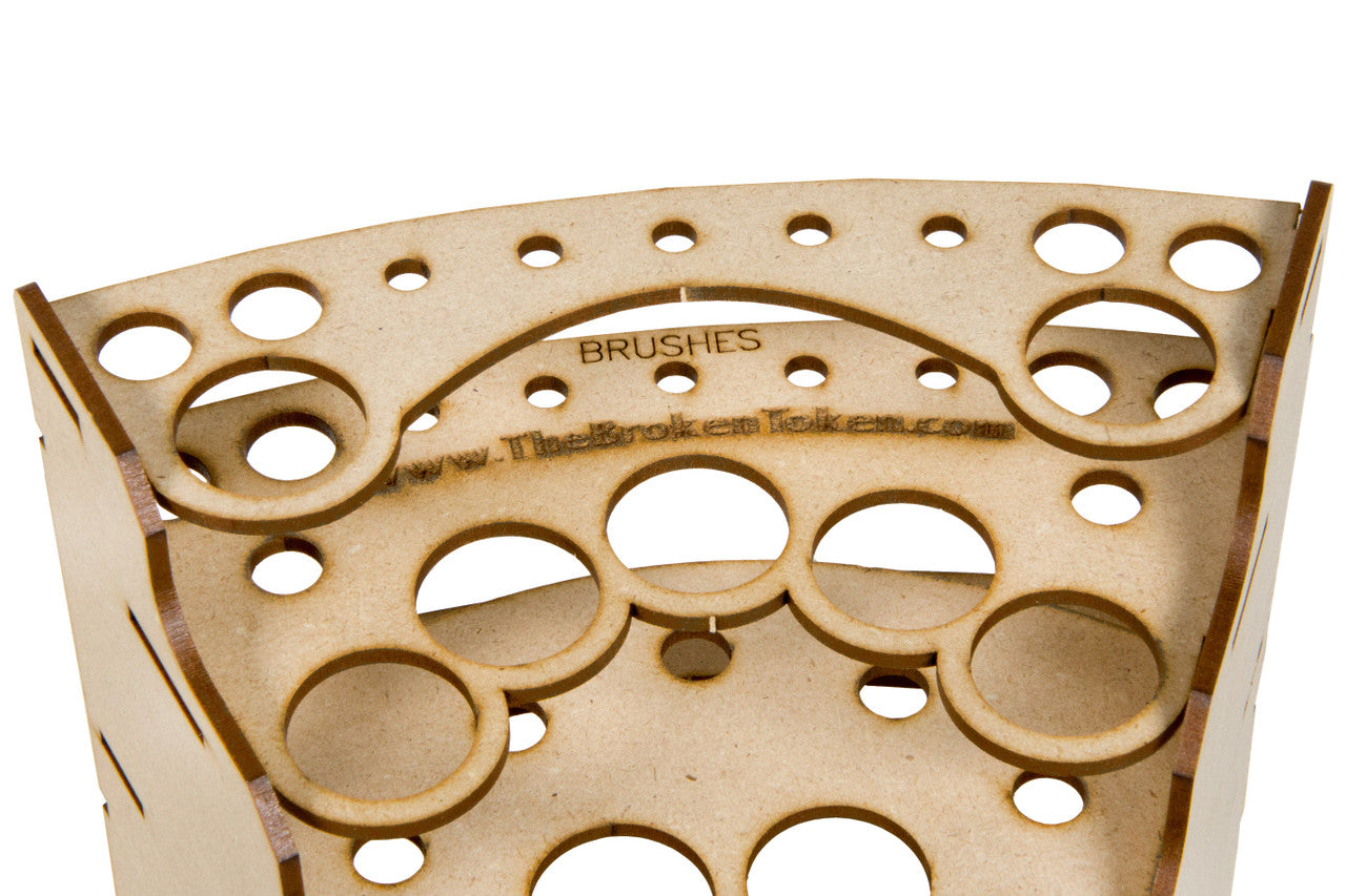 Your miniatures may be works of art, but a disorganized desk certainly isn't. Get your paints and brushes in line with our Modular Paint Rack system! These MDF racks hold your paint pots, bottles and brushes in a tiered layout for easy organization and access when customizing your game pieces. Multiple racks can be combined into a larger system using the included clips!