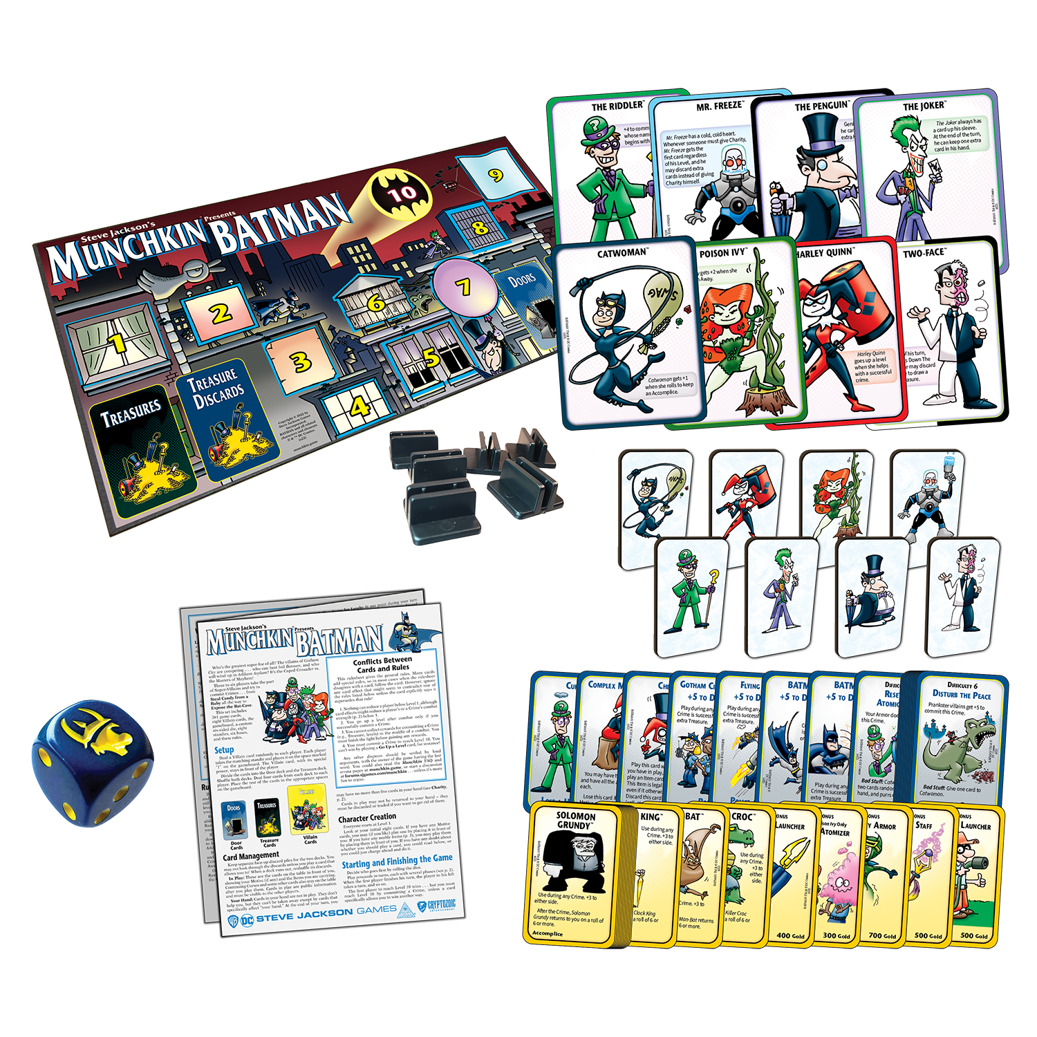 The Kickstarter Edition of Munchkin Batman by Steve Jackson Games includes: