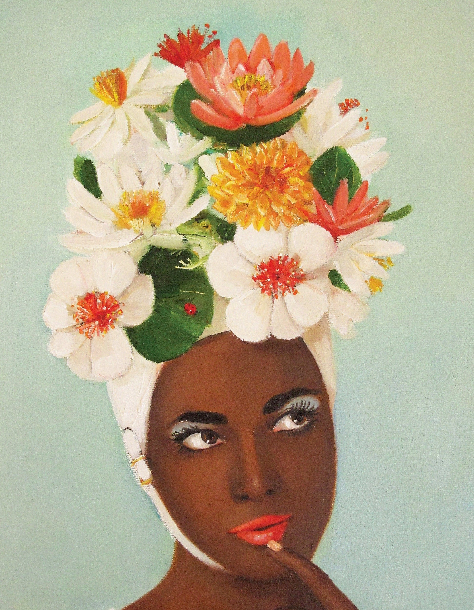 With a marvelous swim cap full of flowers, this beauty is ready for a dip!