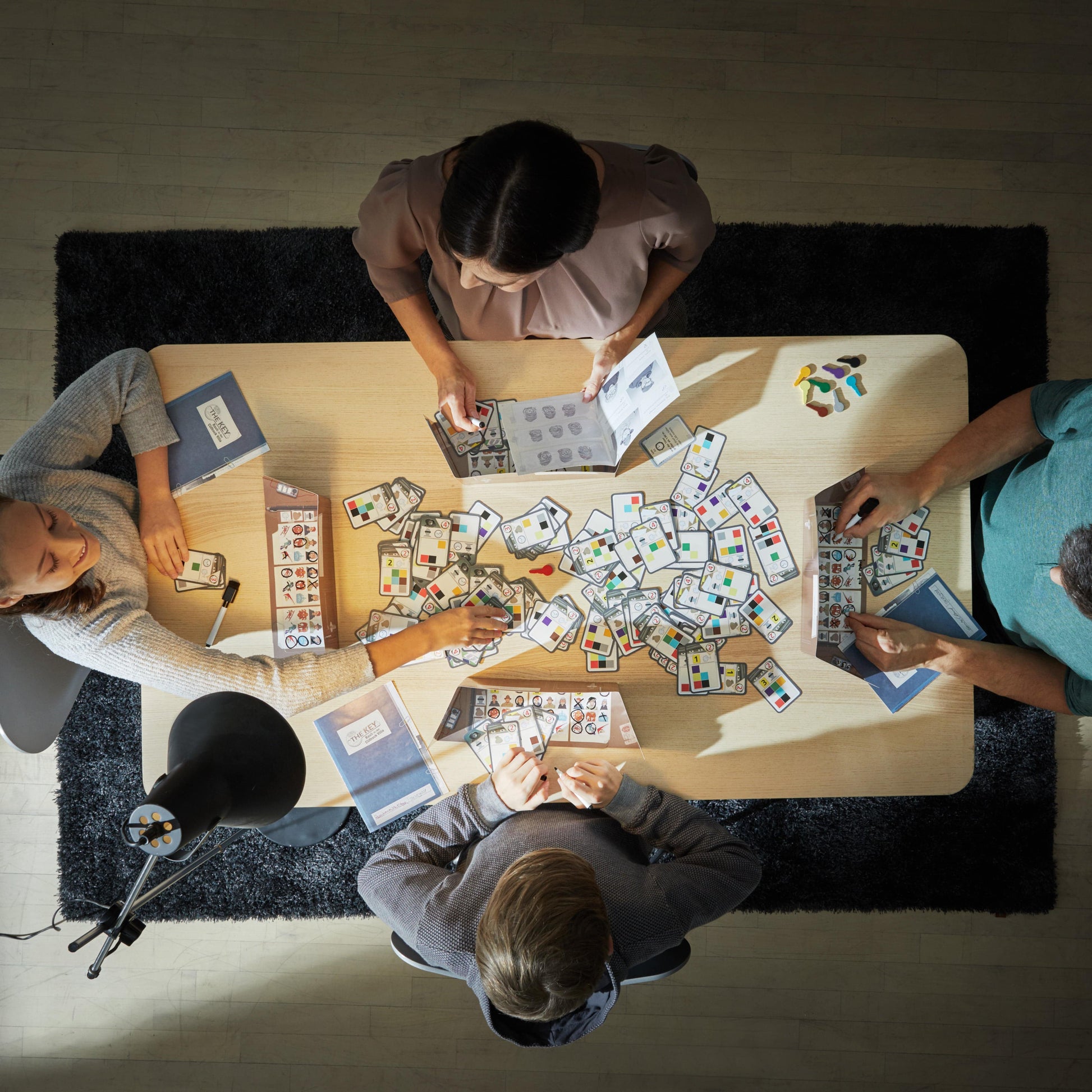 - Includes 4 dry-erase player shields and "briefcase" notepads, 4 dry-erase markers, 140 cards with rules, 9 wooden keys, 1 solution board and 1 rulebook.